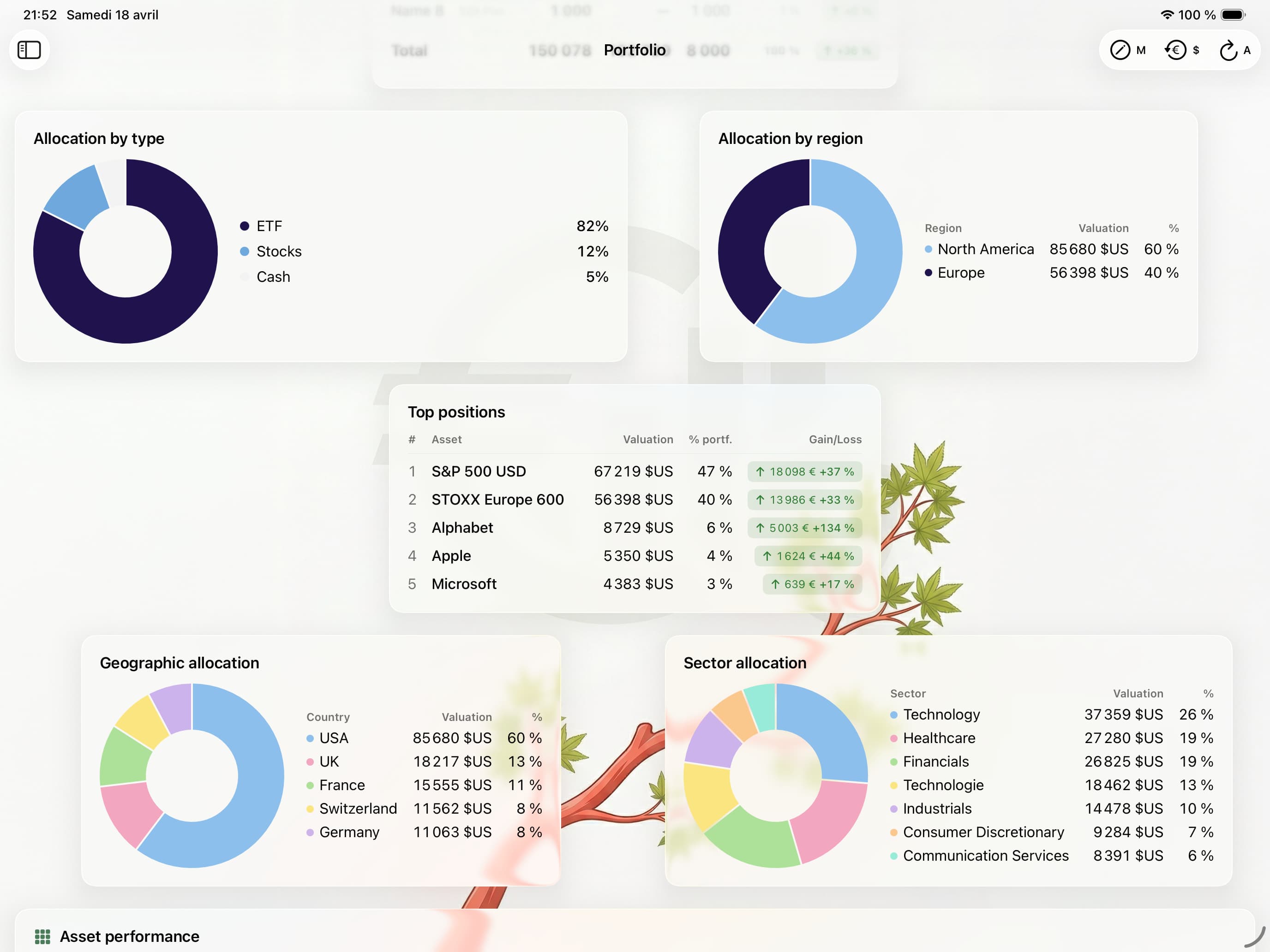 Holistic Asset Tracking: Visualize your Net Worth across Stocks, ETFs, Crypto, and Real Estate in a single, secure interface.